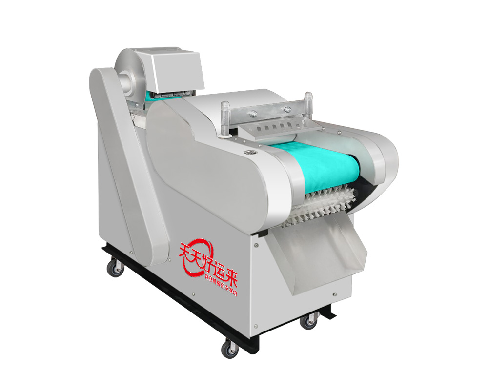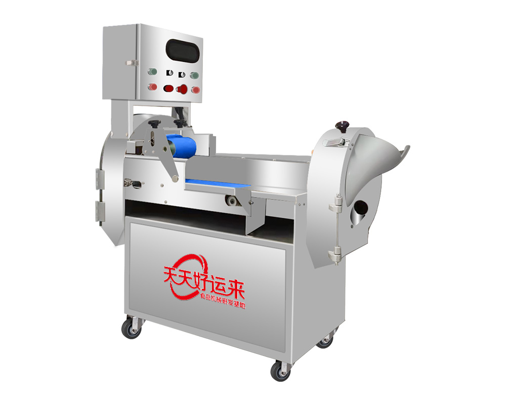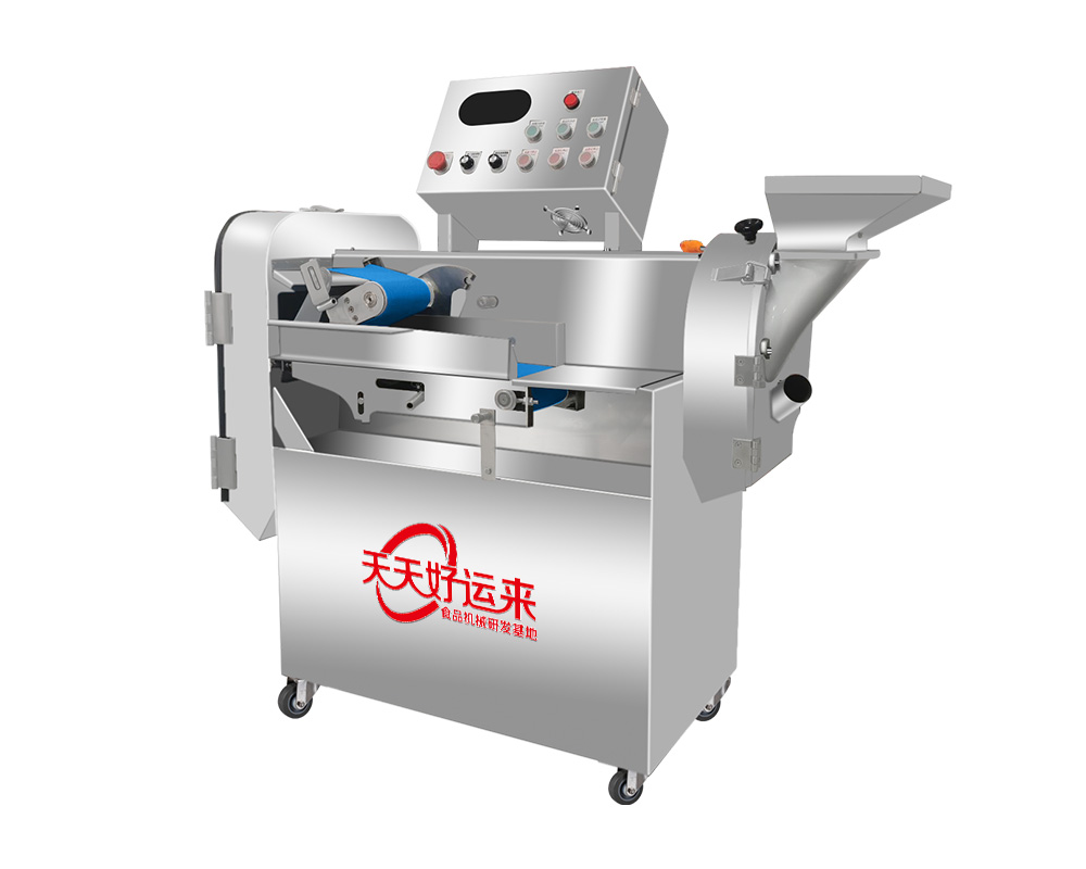 本設備幾乎可切任何瓜果蔬菜,如:切片、絲、丁,末、段等;具備雙調頻功能,一頭是切葉菜類,如長蔥,蒜苗,韭菜,芹菜,白菜,青菜等等,一頭是切球根莖類,如蘿卜,土豆,紅薯,芋頭,筍,洋蔥,茄子,蘋果,生姜等等眾多瓜果類蔬菜。葉菜類的輸送帶速度和轉刀速度采用PLC數控屏操作,均可獨立控制,葉菜切割規格:1~50mm可調。切部份根莖類;根徑部份刀盤范圍:片:2-10MM,絲:2-6MM,丁:8MM、10MM、12MM、15MM、20MM選一;一機多用,功能強大,產量高,操作簡單,皮帶可快速拆卸,并可水槍沖洗,清洗方便。